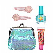 Περιλαμβάνει: Βερνίκι νυχιών, Lip gloss, 2 τσιμπιδάκια μαλλιών, 1 τσαντάκι πορτοφολάκι με παγιέτες.