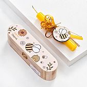 Πασχαλινή Λαμπάδα σε Ξύλινη Κασετίνα Δώρου Αρωματική Κίτρινη (18εκ.) - Μπρελόκ: Bee