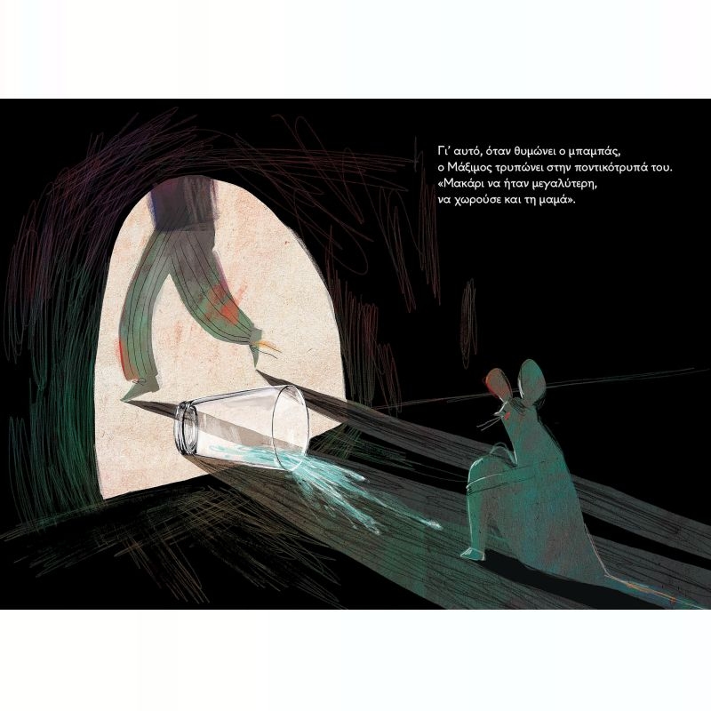 Ο Μάξιμος θέλει να είναι δυνατός! Δυνατός σαν τον μπαμπά του! Ο μπαμπάς του είναι τόσο δυνατός, που ο Μάξιμος νιώθει σαν μικρό ποντικός μπροστά του. Κι όταν θυμώνει ο μπαμπάς, ο Μάξιμος τρυπώνει στην ποντικότρυπά του. "Μακάρι να ήταν μεγαλύτερη να χωρούσε και τη μαμά".