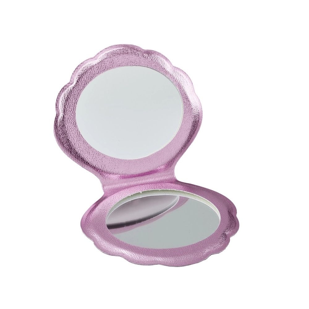 Ένα μικρό και πρακτικό καθρεφτάκι τσέπης σε σχήμα κοχυλιού με ροζ ιριδίζουσες αποχρώσεις, ιδανικό για να το έχετε πάντα μαζί σας. Το παιχνιδιάρικο σχέδιο θυμίζει θάλασσα και καλοκαίρι, προσφέροντας κομψότητα και στυλ στην καθημερινή σας χρήση. Με διαστάσεις 8 x 9 x 0,5 εκ., χωράει εύκολα σε τσάντα, τσέπη ή νεσεσέρ, για να μπορείτε να ελέγχετε το μακιγιάζ ή την εμφάνισή σας οποιαδήποτε στιγμή της ημέρας.