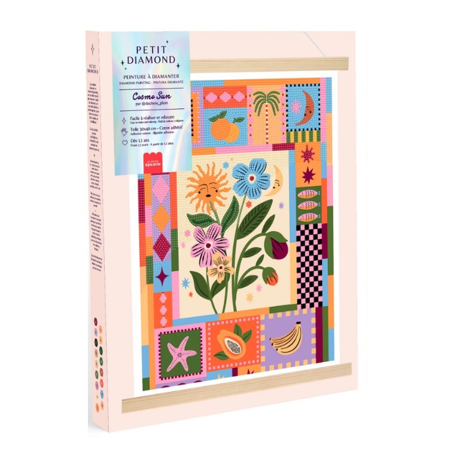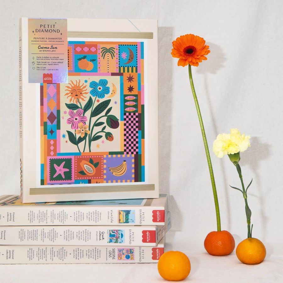 Ανακαλύψτε τη συλλογή Petit Diamond: δημιουργικά σετ που σας επιτρέπουν να δημιουργήσετε υπέροχες εικονογραφήσεις με στρας. Σχεδιασμένα τόσο για αρχάριους όσο και για λάτρεις, αυτά τα κιτ προσφέρουν μια χαλαρωτική και πολύχρωμη δημιουργική εμπειρία. Το Cosmo Sun αποπνέει μια χαρούμενη και αισιόδοξη ατμόσφαιρα, ιδανική για την άνοιξη και το καλοκαίρι. Αυτό το diamond painting συνδυάζει τη χαρά της δημιουργίας, τη χαλάρωση και ένα έντονα διακοσμητικό αποτέλεσμα, αποτελώντας μια προφανή επιλογή για να προσελκύσει πελάτες που αναζητούν καινοτομία και καλή διάθεση.