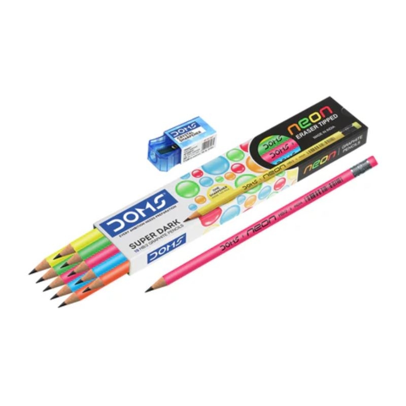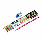 Σετ Μολυβιών με Σβήστρα & Δώρο Ξύστρα - Neon Super Dark (13τμχ./HB2) - Doms