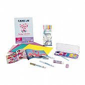 Περιλαμβάνει: Νερομπογιές Candy Collection σε 12 απαλές pastel αποχρώσεις, 1 κόλλα Candy Collection, 3 μαρκαδόρους Giotto Décor Metallic (λευκό, χρυσό, ασημί), 8 μαρκαδόρους Giotto Turbo Glitter Pastel, 1 μπλοκ Canson Candy Collection A4 (250gr) με 30 φύλλα σε pastel χρώματα και 1 creative book γεμάτο ιδέες και έμπνευση.