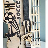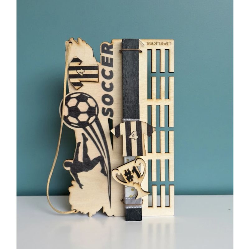 Μια ξεχωριστή, αρωματική πασχαλινή λαμπάδα Lifelikes με ποδοσφαιρικό θέμα, που συνδυάζει το δώρο με τη διακόσμηση και την πρακτικότητα. Η λαμπάδα συνοδεύεται από ξύλινο καδράκι τοίχου με ειδικές υποδοχές για να κρεμάσει το παιδί τα μετάλλιά του, δημιουργώντας μια όμορφη και οργανωμένη γωνιά στο παιδικό δωμάτιο. Τα διακοσμητικά στοιχεία της λαμπάδας, η φανέλα με τον αριθμό της ομάδας και το κύπελλο, είναι μαγνητάκια που αποσπώνται και μπορούν να χρησιμοποιηθούν ξανά, όπως στο ψυγείο ή σε μεταλλική επιφάνεια. Ένα δώρο που δεν τελειώνει το Πάσχα, αλλά συνεχίζει να συνοδεύει το παιδί στις καθημερινές του επιτυχίες και διακρίσεις.