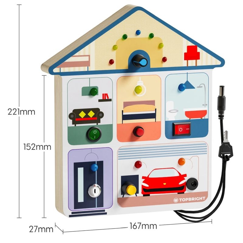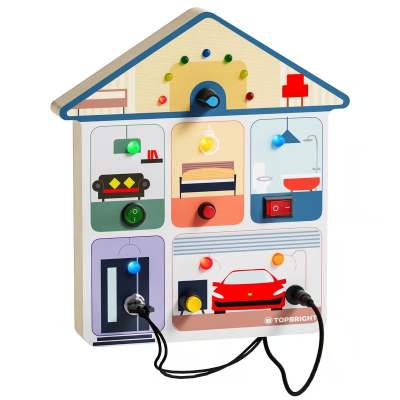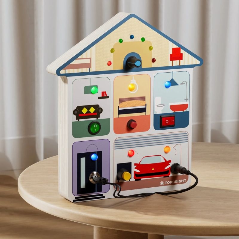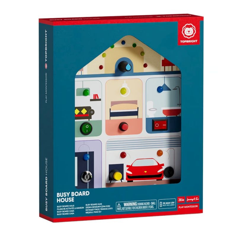 Το Busy Board της Top Bright είναι ένα εκπαιδευτικό παιχνίδι πρώιμης ανάπτυξης, σχεδιασμένο για παιδιά από 3 ετών και άνω. Πρόκειται για έναν διαδραστικό πίνακα δραστηριοτήτων σε σχήμα σπιτιού, που βοηθά το παιδί να αναπτύξει τις κινητικές και αισθητηριακές του δεξιότητες μέσα από το παιχνίδι. Με έμπνευση από καθημερινά αντικείμενα, το παιχνίδι ενθαρρύνει τη φυσική περιέργεια του παιδιού και συμβάλλει στην κατανόηση της σχέσης αιτίας-αποτελέσματος, καθώς και στην ανάπτυξη δεξιοτήτων επίλυσης προβλημάτων — πάντα με ασφαλή και ευχάριστο τρόπο.