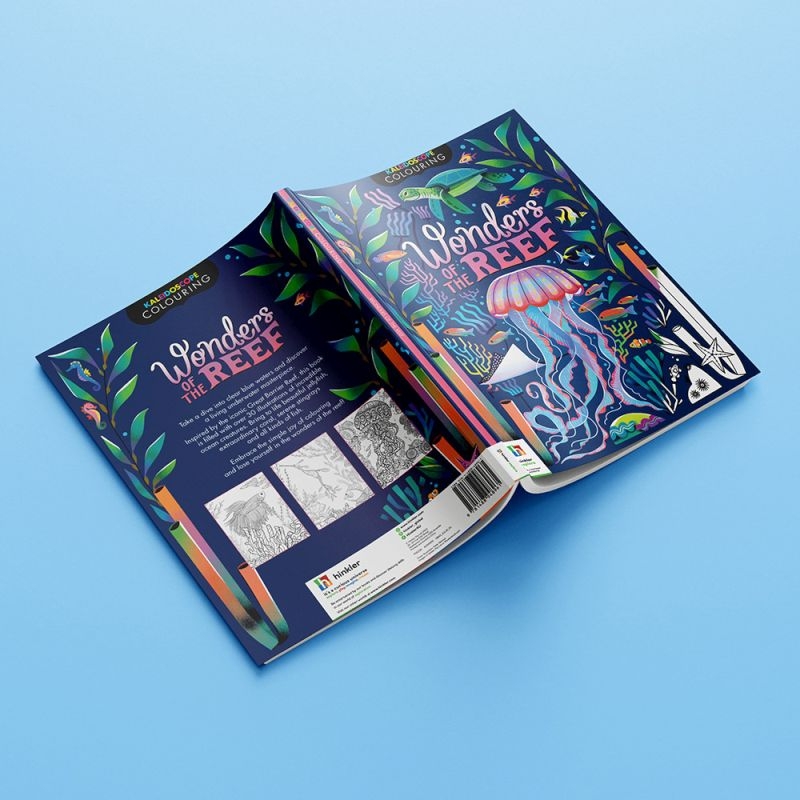 Κάνε μια βουτιά σε κρυστάλλινα γαλάζια νερά και ανακάλυψε έναν μαγευτικό υποθαλάσσιο κόσμο γεμάτο ζωή. Εμπνευσμένο από τον εντυπωσιακό Μεγάλο Κοραλλιογενή Ύφαλο, αυτό το βιβλίο ζωγραφικής σε προσκαλεί να εξερευνήσεις ένα ζωντανό θαλάσσιο αριστούργημα. Στις σελίδες του θα βρεις μοναδικές εικονογραφήσεις από συναρπαστικά πλάσματα του ωκεανού από κομψές μέδουσες και εντυπωσιακά κοράλλια μέχρι γαλήνιες σαλάχες και πολύχρωμα ψάρια. Άφησε τη φαντασία σου ελεύθερη, χαλάρωσε και δώσε ζωή σε έναν κόσμο γεμάτο χρώμα και ομορφιά μέσα από μια δημιουργική και απολαυστική εμπειρία ζωγραφικής.