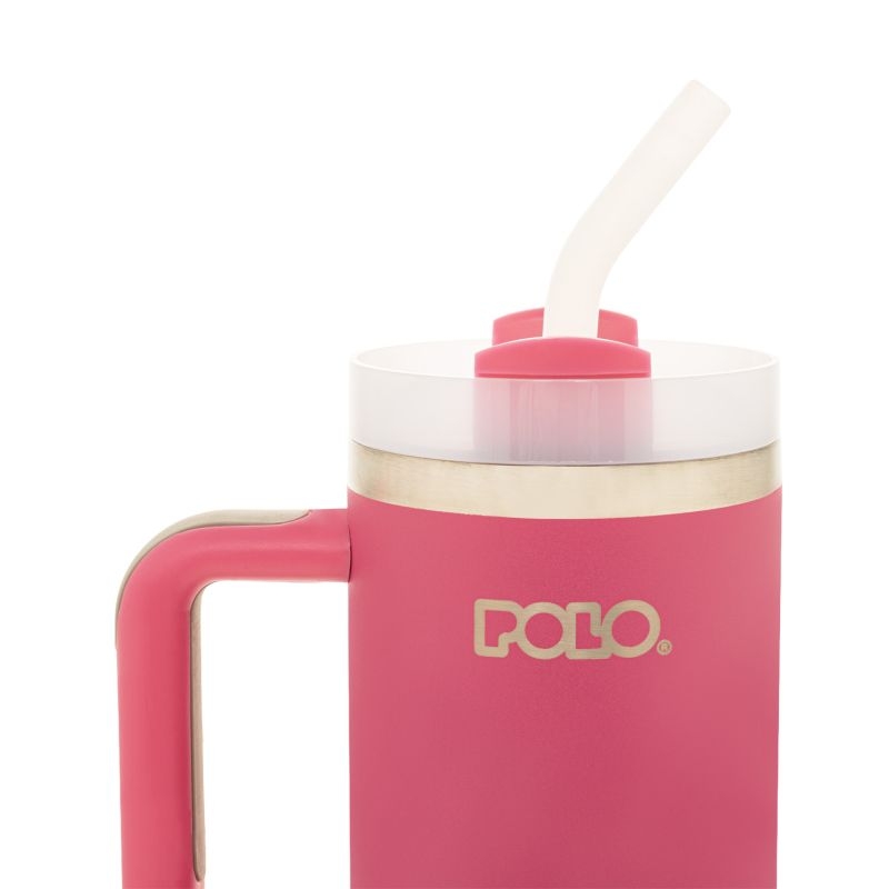 Κούπα Θερμός Inox με Καλαμάκι - Pastel Fuchsia (900ml) - Polo
