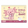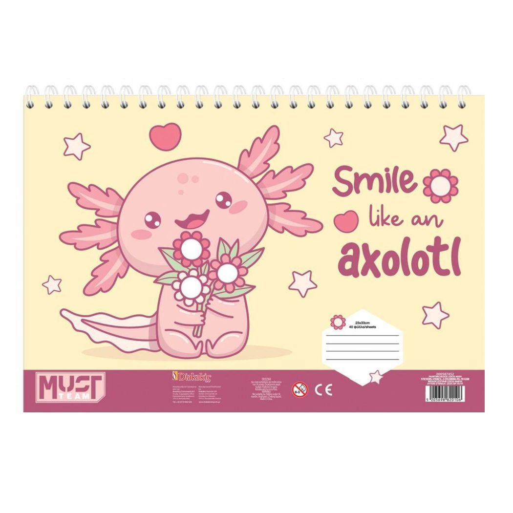 Μπλοκ ζωγραφικής σπιράλ με Αυτοκόλλητα & Στένσιλ A4 - Smile like an Axoloti (40Φ.) - Must