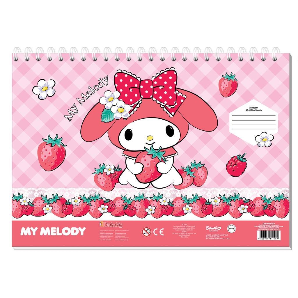 Μπλοκ ζωγραφικής σπιράλ με Αυτοκόλλητα & Στένσιλ A4 - My Melody Strawberries (40Φ.) - Sanrio