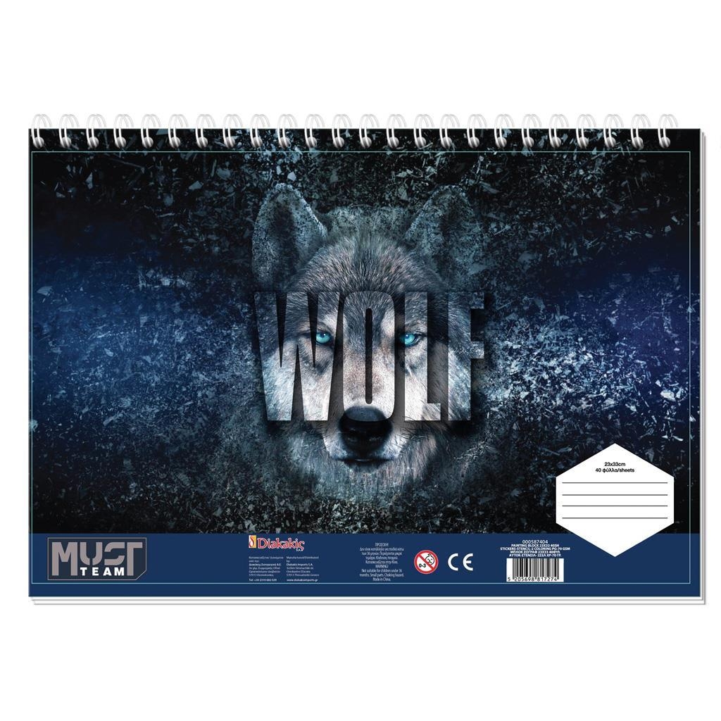 Μπλοκ ζωγραφικής σπιράλ με Αυτοκόλλητα & Στένσιλ A4 - Wolf (40Φ.) - Must