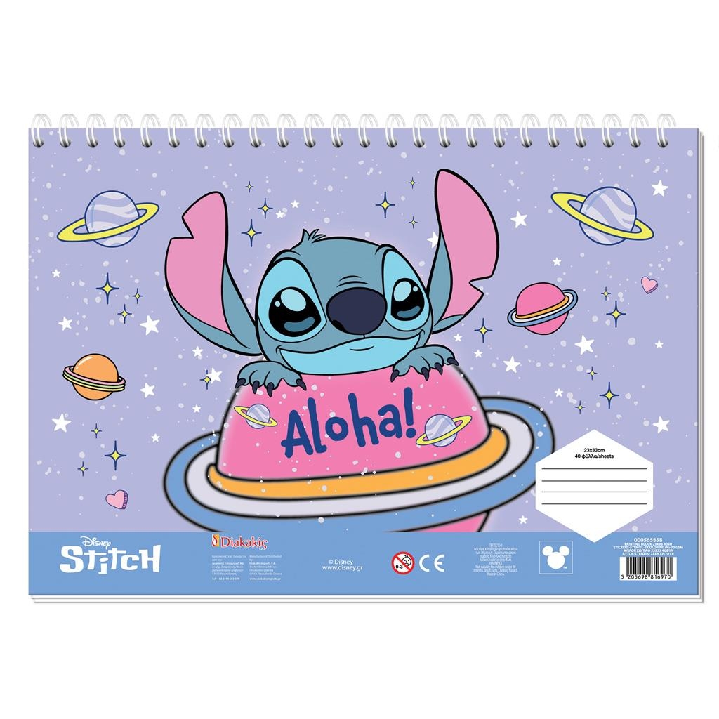 Μπλοκ ζωγραφικής σπιράλ με Αυτοκόλλητα & Στένσιλ A4 - Aloha! (40Φ.) - Disney