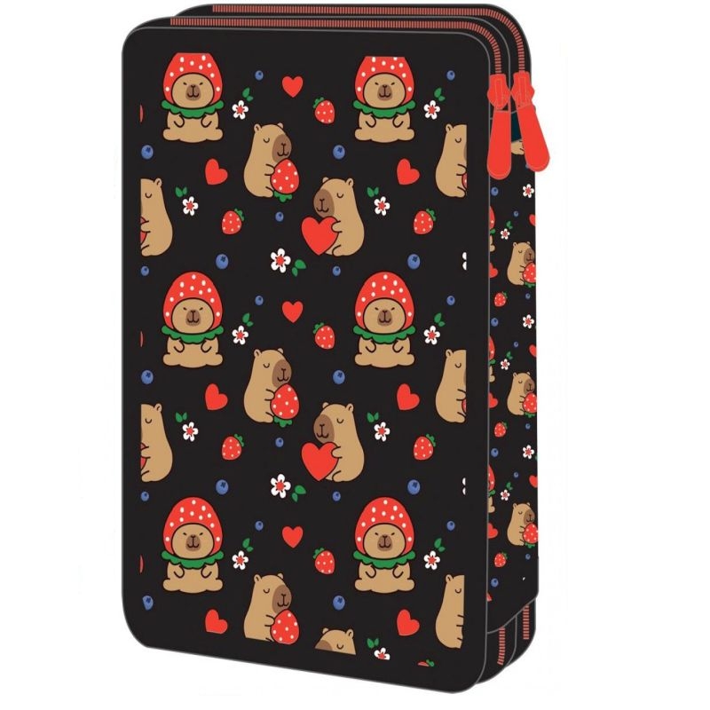 Η Σχολική Κασετίνα Διπλή Γεμάτη Capybara Strawberries διαθέτει όλη την απαραίτητη γραφική ύλη και προσφέρει την κατάλληλη οργάνωση, ασφαλή μεταφορά και φύλαξη όλων των ειδών γραφής για το σχολείο.