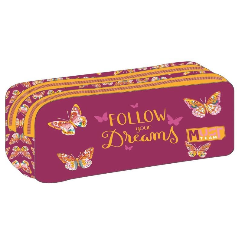 Σχολική κασετίνα βαρελάκι Butterfly follow your dreams Must Team με 2 ευρύχωρες θήκες που θα ενθουσιάσει! Μια απαραίτητη και ανθεκτική σχολική κασετίνα που ταιριάζει με κάθε σχολικό σακίδιο πλάτης και τρόλεϊ, προσφέροντας άριστη οργάνωση, ασφαλή φύλαξη και εύκολη μεταφορά όλων των απαραίτητων σχολικών ειδών. Διατηρεί τα πάντα τακτοποιημένα και εύκολα προσβάσιμα, συνδυάζοντας λειτουργικότητα με στυλ! Μια εντυπωσιακή και αυθεντική σχολική κασετίνα My Melody που θα ενθουσιάσει!