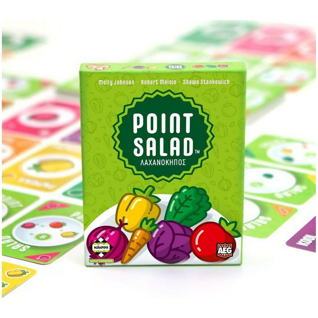 To Point Salad είναι ένα γρήγορο και διασκεδαστικό παιχνίδι καρτών για όλη την οικογένεια! Μαζέψτε λαχανικά και κάρτες πόντων από μια αγορά που συνεχώς αλλάζει. Συνδυάστε τις κάρτες λαχανικών με τις σωστές κάρτες πόντων για να φτιάξετε την καλύτερη σαλάτα!