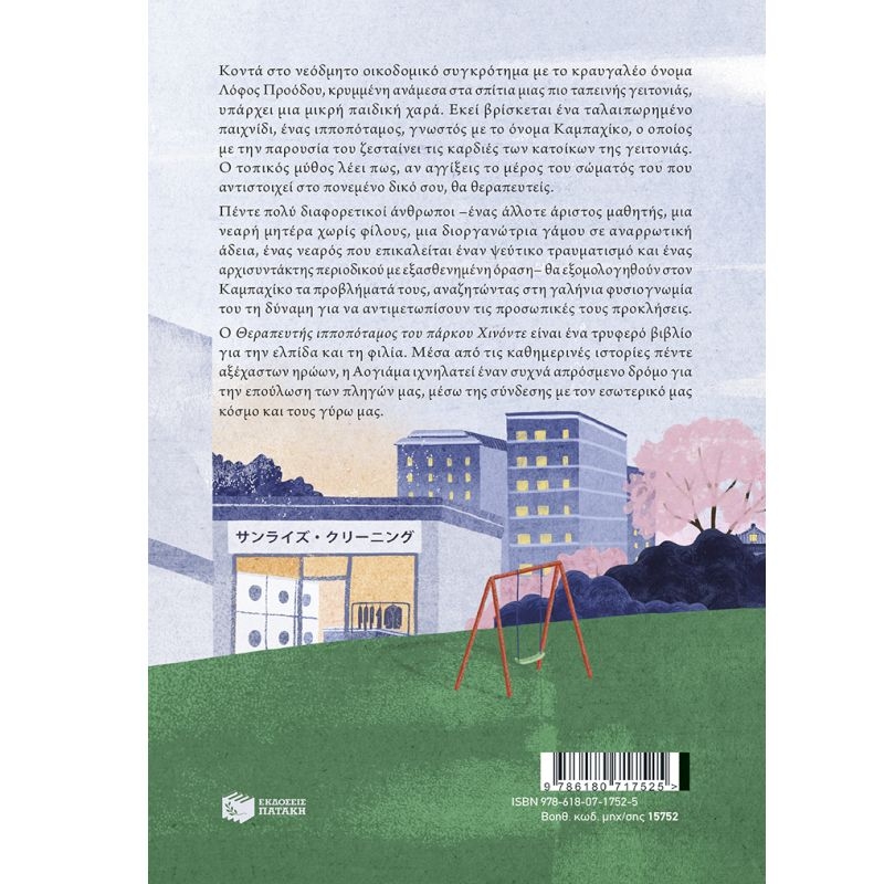 Ο «Θεραπευτής ιπποπόταμος του πάρκου Χινόντε» είναι ένα τρυφερό βιβλίο για την ελπίδα και τη φιλία. Μέσα από τις καθημερινές ιστορίες πέντε αξέχαστων ηρώων, η Αογιάμα ιχνηλατεί έναν συχνά απρόσμενο δρόμο για