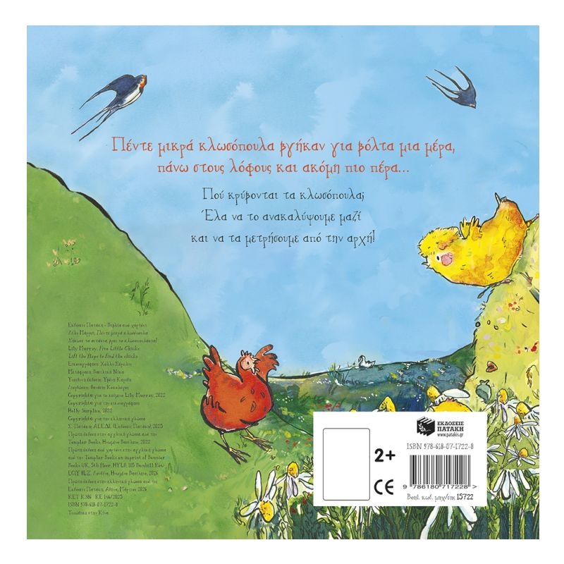 Πέντε μικρά κλωσόπουλα βγήκαν για βόλτα μια μέρα, πάνω στους λόφους και ακόμη πιο πέρα…Πού κρύβονται τα κλωσόπουλα; Έλα να το ανακαλύψουμε μαζί και να τα μετρήσουμε από την αρχή!
