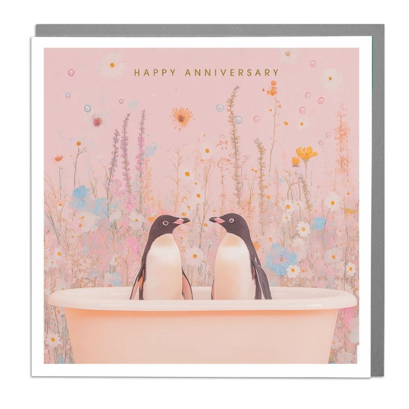 Ευχετήρια κάρτα με Φάκελο - Happy Anniversary (Penguin/15x15) - Desing Lola