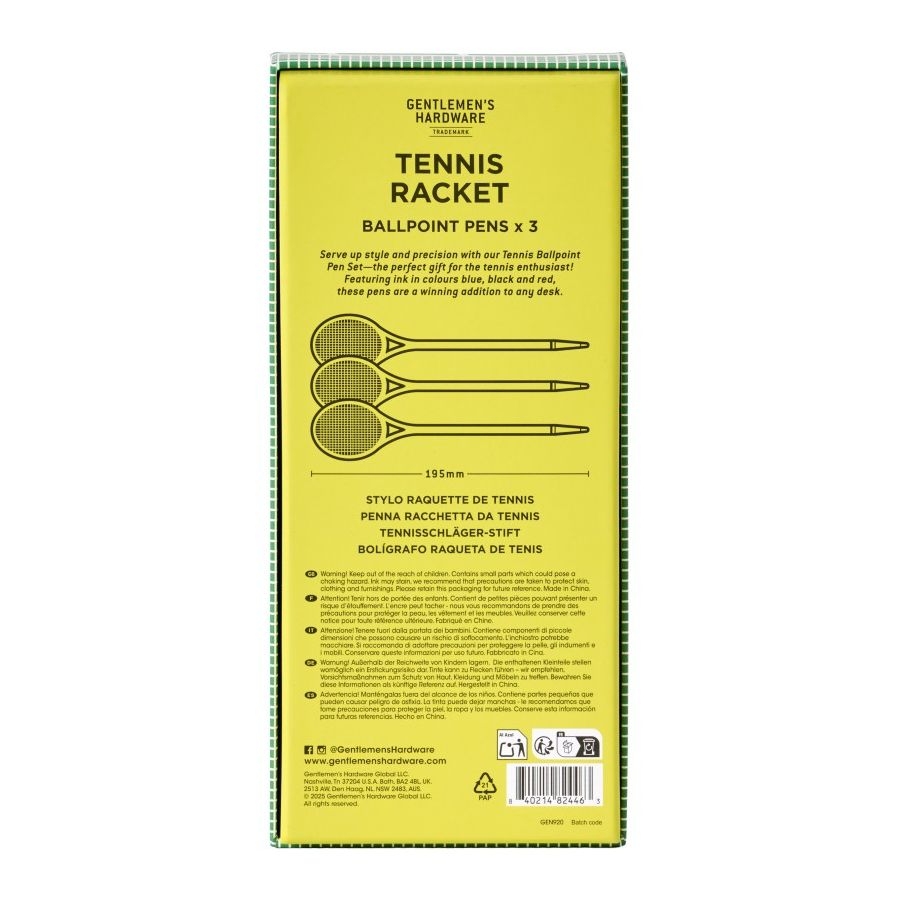 Σετ Στυλό Tennis Racket - Κόκκινο, Μαύρο & Μπλε (3τμχ./1.0mm) - Gentlemen's Hardware