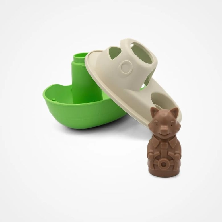 Το σκάφος επιπλέει στο νερό και είναι ειδικά σχεδιασμένο για παιδιά από 12 μηνών, με εργονομία που ταιριάζει απόλυτα στα μικρά χέρια. Κατασκευασμένο από 100% ανακυκλωμένο και ανακυκλώσιμο πλαστικό PEHD, χωρίς κόλλες, βίδες ή αυτοκόλλητα, αποτελεί ένα παιχνίδι που είναι εξαιρετικά ασφαλές και φιλικό προς το περιβάλλον.