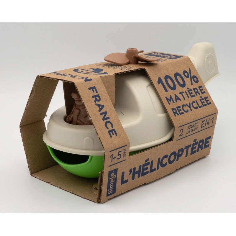 Το Ελικόπτερο Magic Cream της Simple είναι ένα ευφάνταστο και πολυλειτουργικό παιδικό παιχνίδι, κατασκευασμένο από ανακυκλωμένα υλικά, που προσφέρει ατελείωτες περιπέτειες στη στεριά, στο νερό αλλά και στη φαντασία των παιδιών. Το παιχνίδι διαθέτει έξυπνη κατασκευή με ενσωματωμένο μικρό σκαφάκι στο εσωτερικό του, ώστε να μπορεί να λειτουργεί ως ελικόπτερο, αλλά και ως σκάφος για παιχνίδι στο νερό. Έτσι, το παιδί μπορεί να ζει αποστολές διάσωσης και εξερεύνησης σε κάθε περιβάλλον. Ο Mr. Fox (Renard) είναι ο πιλότος και συνοδεύει κάθε αποστολή, ενώ η κινούμενη έλικα προσθέτει ρεαλισμό και κάνει το παιχνίδι ακόμα πιο διασκεδαστικό. Σχεδιασμένο για παιδιά από 12 μηνών και άνω, αποτελείται από ασφαλή, ελαφριά και ανθεκτικά κομμάτια χωρίς μικρά εξαρτήματα, ιδανικά για μικρά παιδικά χέρια.