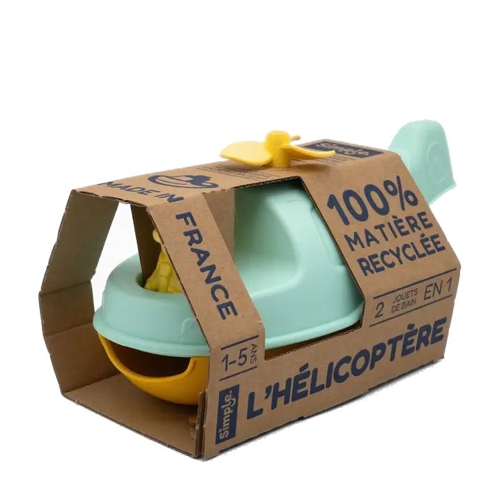 Το Ελικόπτερο Magic Turquoise της Simple είναι ένα ευφάνταστο και πολυλειτουργικό παιδικό παιχνίδι, κατασκευασμένο από ανακυκλωμένα υλικά, που προσφέρει ατελείωτες περιπέτειες στη στεριά, στο νερό αλλά και στη φαντασία των παιδιών. Το παιχνίδι διαθέτει έξυπνη κατασκευή με ενσωματωμένο μικρό σκαφάκι στο εσωτερικό του, ώστε να μπορεί να λειτουργεί ως ελικόπτερο, αλλά και ως σκάφος για παιχνίδι στο νερό. Έτσι, το παιδί μπορεί να ζει αποστολές διάσωσης και εξερεύνησης σε κάθε περιβάλλον. Ο Mr. Fox (Renard) είναι ο πιλότος και συνοδεύει κάθε αποστολή, ενώ η κινούμενη έλικα προσθέτει ρεαλισμό και κάνει το παιχνίδι ακόμα πιο διασκεδαστικό. Σχεδιασμένο για παιδιά από 12 μηνών και άνω, αποτελείται από ασφαλή, ελαφριά και ανθεκτικά κομμάτια χωρίς μικρά εξαρτήματα, ιδανικά για μικρά παιδικά χέρια.