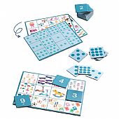 Ένα διασκεδαστικό και εκπαιδευτικό παιχνίδι από την εταιρεία Djeco, που εισάγει τα παιδιά στον κόσμο των αριθμών μέσα από το αγαπημένο παιχνίδι bingo. Με θέμα τα παιχνίδια, η μάθηση γίνεται ευχάριστη και άμεση. Το σετ περιλαμβάνει 4 διαφορετικά παιχνίδια σε ένα, με προοδευτικό επίπεδο δυσκολίας, ώστε το παιδί να εξελίσσεται σταδιακά. Μέσα από την αντιστοίχιση αριθμών και ποσοτήτων, τα παιδιά εξασκούν τις μαθηματικές δεξιότητες, μαθαίνουν να μετρούν και να αναγνωρίζουν αριθμούς με φυσικό τρόπο. Η διαδικασία του παιχνιδιού ενισχύει τη συγκέντρωση και τη μνήμη, ενώ η παρατήρηση και η σωστή επιλογή καρτών καλλιεργούν τη παρατηρητικότητα και τη γνωστική ανάπτυξη. Παράλληλα, καθώς παίζεται με περισσότερους παίκτες, ενισχύονται οι κοινωνικές δεξιότητες και το συνεργατικό παιχνίδι. Οι κανόνες είναι απλοί και κατανοητοί, ενώ οι λύσεις στο τέλος του βιβλιαρίου βοηθούν στον εύκολο έλεγχο, ενισχύοντας την αυτονομία και την αυτοπεποίθηση του παιδιού.