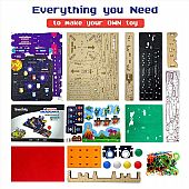 Περιλαμβάνει: 7 ξύλινες πλάκες υψηλής ποιότητας, 2 θεματικές πίστες (Dino World και Space), oδηγίες με συμβουλευτικά βίντεο, εξαρτήματα όπως λάστιχα και αρθρώσεις, αναλυτικό και εύχρηστο εγχειρίδιο οδηγιών βήμα προς βήμα