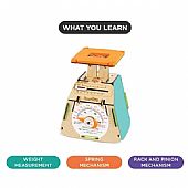 Το παιχνίδι με ζυγαριές αποτελεί αναμφισβήτητα ένα από τα αγαπημένα παιχνίδια μίμησης – ρόλων των παιδιών, που προάγει τη δημιουργικότητα και ενισχύει τη φαντασία τους. Φανταστείτε αυτά να μπορούσαν να φτιάξουν τη δική τους, πλήρως λειτουργική ζυγαριά που θα πραγματοποιούσαν τις δικές τους μετρήσεις. Με το D.I.Y. σετ της εταιρείας Smartivity μπορούν. Μία δημιουργική και εκπαιδευτική ενασχόληση που θα τα εισάγει σε έννοιες S.T.E.A.M. όπως η βαρύτητα, η ταλάντωση, και ο μηχανισμός διεύθυνσης με κρεμαγιέρα και γρανάζι. Το παιχνίδι εισάγει επίσης τα παιδιά στα διαφορετικά συστήματα μέτρησης και μετατροπής του βάρους. Το μόνο που έχουν να κάνουν είναι να ακολουθήσουν τις αναλυτικές εικονογραφημένες οδηγίες. Μπορούν να ασχοληθούν ατομικά ή να κατασκευάσουν το παιχνίδι συνεργατικά. Τα παιχνίδια Smartivity αφαιρούν τους περιορισμούς και τους κανόνες και προσθέτουν κριτική σκέψη και περιέργεια! Είναι φιλικά προς το περιβάλλον, πληρούν τα μέγιστα πρότυπα ασφαλείας, προάγουν την τάξη, το παιχνίδι μακριά από οθόνες ενώ είναι κατά της διάκρισης των φύλων. Συμβάλουν στην ανάπτυξη της δημιουργικότητας, της επίλυσης προβλημάτων, της συνεργασίας, των μηχανικών δεξιοτήτων, των οπτικοκινητικών δεξιοτήτων, της λεπτής κινητικότητας, της κριτικής σκέψης και της φαντασίας