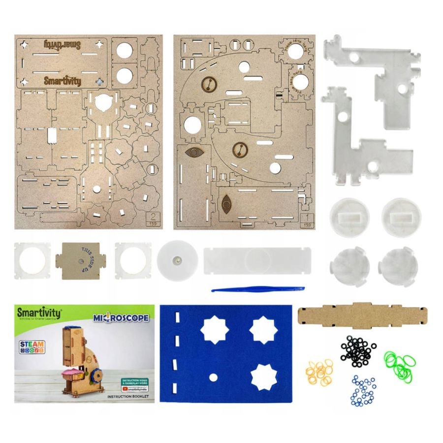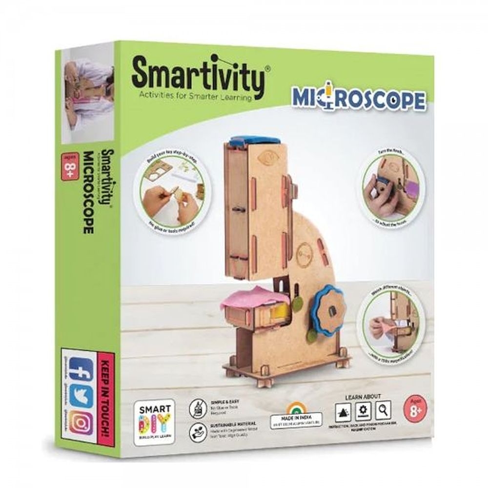 Τώρα τα παιδιά μπορούν να ανακαλύψουν όσα δε μπορούν να δουν με γυμνό μάτι μέσα από το φακό του μικροσκοπίου! Με αυτό το D.I.Y. σετ της εταιρείας Smartivity, η ικανοποίησή τους θα είναι διπλή αφού θα έχουν τη χαρά να κατασκευάσουν κάτι «από το μηδέν» και στη συνέχεια, να παρατηρήσουν τον κόσμο όπως δεν τον έχουν ξαναδεί! Αυτό το οπτικό μικροσκόπιο με μεγέθυνση 100 φορών θα χαρίσει στα παιδιά μία πολύ ενδιαφέρουσα εμπειρία επιστημονικών-εκπαιδευτικών παιχνιδιών ενώ το led φωτάκι που διαθέτει, θα χαρίσει ακόμη μεγαλύτερη ακρίβεια στο εξεταζόμενο δείγμα. Μία δημιουργική και εκπαιδευτική ενασχόληση που θα τα εισάγει σε έννοιες S.T.E.A.M. όπως η διάθλαση, η μεγέθυνση και άλλες. Το μόνο που έχουν να κάνουν είναι να ακολουθήσουν τις αναλυτικές εικονογραφημένες οδηγίες. Μπορούν να ασχοληθούν ατομικά ή να κατασκευάσουν το παιχνίδι συνεργατικά. Τα παιχνίδια Smartivity αφαιρούν τους περιορισμούς και τους κανόνες και προσθέτουν κριτική σκέψη και περιέργεια! Είναι φιλικά προς το περιβάλλον, πληρούν τα μέγιστα πρότυπα ασφαλείας, προάγουν την τάξη, το παιχνίδι μακριά από οθόνες ενώ είναι κατά της διάκρισης των φύλων. Συμβάλουν στην ανάπτυξη της δημιουργικότητας, της επίλυσης προβλημάτων, της συνεργασίας, των μηχανικών δεξιοτήτων, των οπτικοκινητικών δεξιοτήτων, της λεπτής κινητικότητας, της κριτικής σκέψης και της φαντασίας.