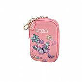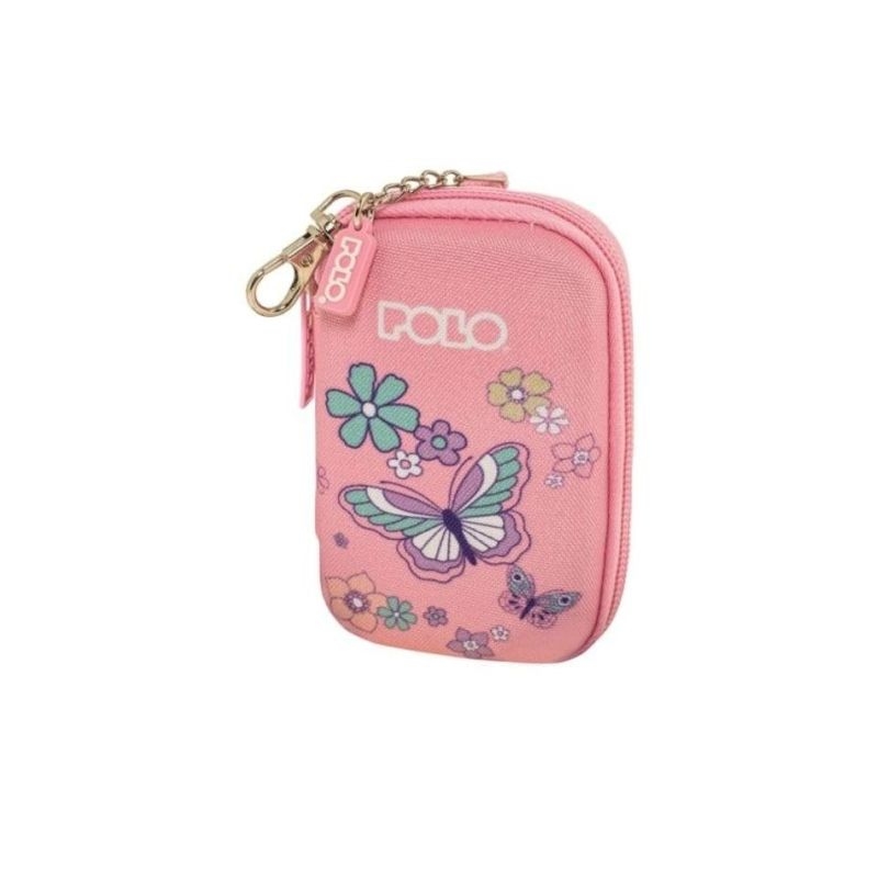 Μικρό και κομψό πορτοφολάκι από τη Polo σε ροζ απόχρωση, με φερμουάρ και πρακτικό κρίκο για εύκολη μεταφορά. Διακοσμείται με όμορφα σχέδια από πεταλούδες και λουλούδια, προσφέροντας ένα χαρούμενο και ανοιξιάτικο στυλ.